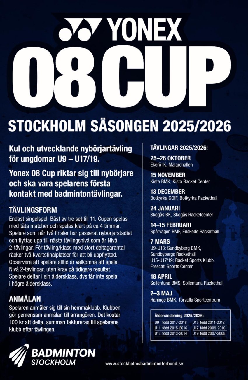 Välkomna till Yonex 08 cup på lördag 18 april i Sollentuna!