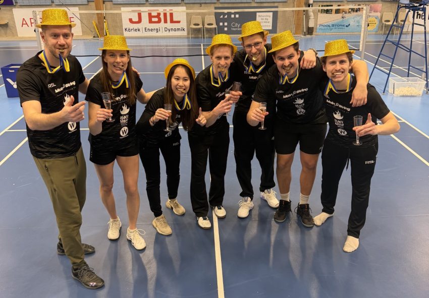 Kvällen avslutades med guldfest hos vår sponsor Blackstone i Sundbyberg. Vi firade då att klubben vann division 1 Norra. Den 18 april är det kval till Svenska Badminton Ligan, som vi givetvis tackat ja till. Vi hoppas då på stor uppslutning på läktaren för att heja fram vår klubb.